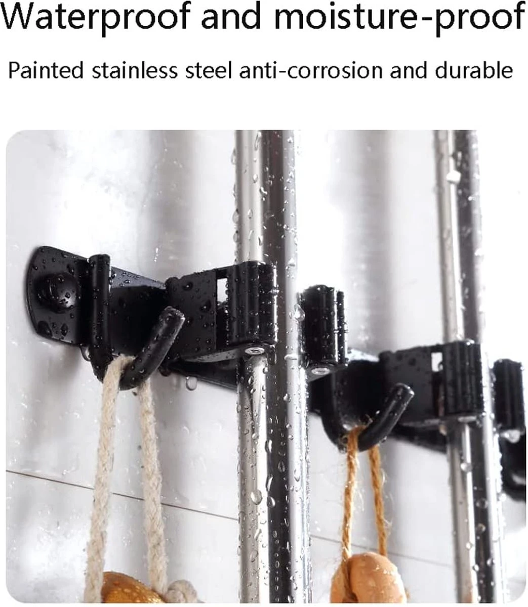 【Premium kwaliteit en stabiel design】 Deze mop- en bezemhouder is gemaakt van hoogwaardig SUS304 roestvrij staal, dat corrosiebestendig, krasbestendig, waterdicht is, veel duurzamer dan andere plastic mophouders.