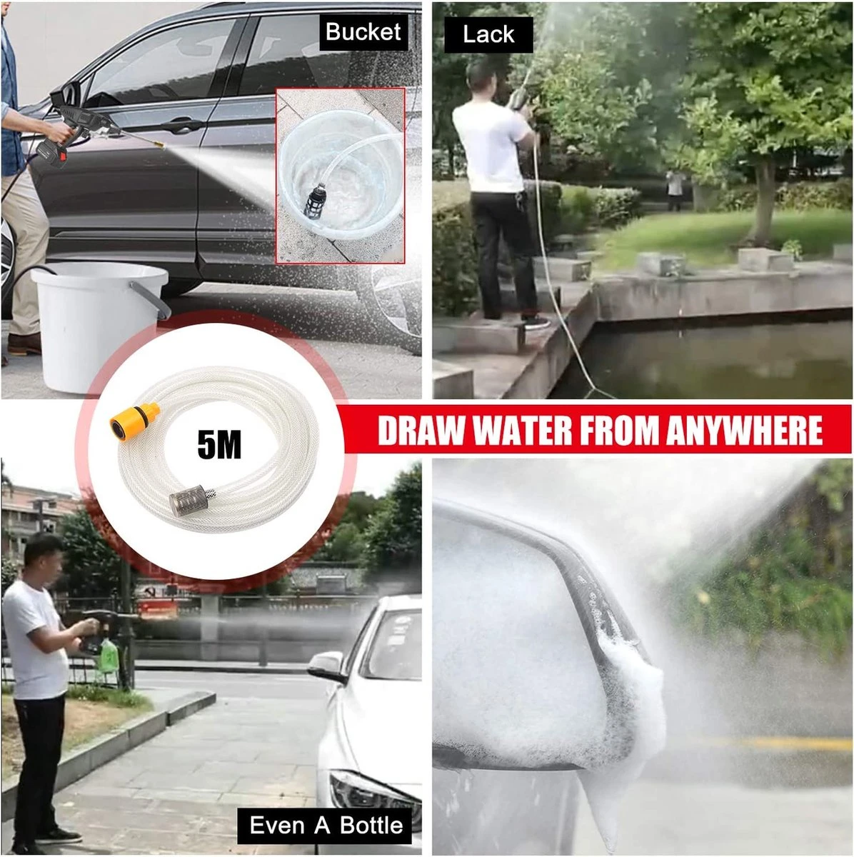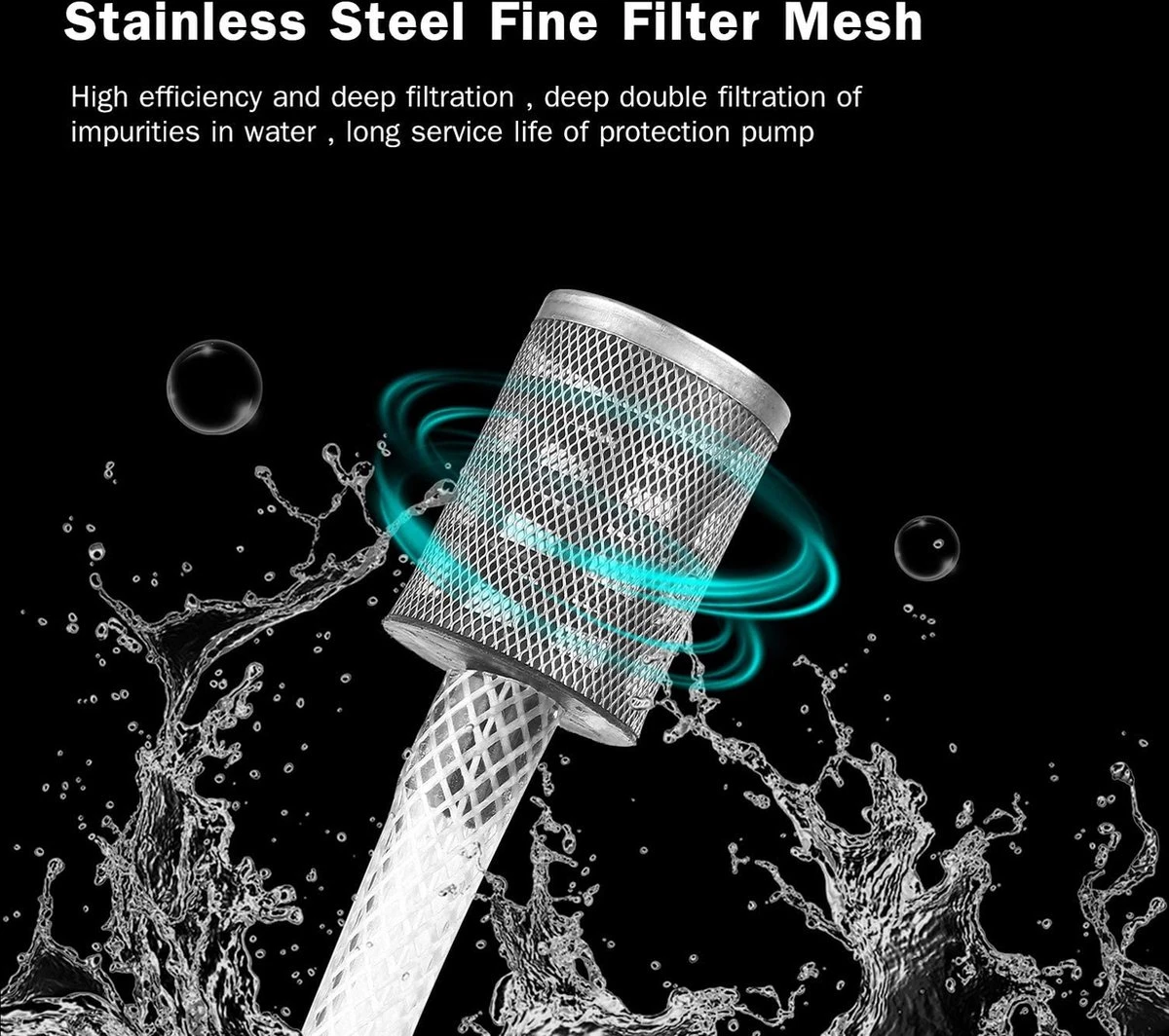 PORTABLE & PREMIUM DESIGN: De 200-inch slang met filterkorf kan effectief en diep filteren onzuiverheden, deeltjes, afval bladeren, slib, enz., een betere bescherming van onze drukmachine. Vergeleken met traditionele wasmachines is onze snoerloze hogedrukreiniger lichter en draagbaarder. Gewoon een paar minuten om de installatie te voltooien en uw werk te beginnen. U kunt het zelfs aan een fles vastmaken. Trek water uit elke waterbron, het is de beste keuze voor buiten kamperen en lange reizen.