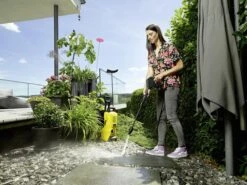 De Home Kit garandeert een spatvrije reiniging van grotere oppervlakken in huis en bevat de T-Racer T1 oppervlaktereiniger en 500 ml “Patio & Deck” reinigingsmiddel. Het reinigingsmiddel kan snel en comfortabel worden aangebracht vanuit de geïntegreerde wasmiddeltank. De K 3 Premium Power Control maakt ook indruk met een ingebouwde slanghaspel, een uitschuifbare telescopische handgreep voor comfortabel transport en opslag, een standaard voor meer stabiliteit, houders voor accessoires, hogedrukpistool en kabel, evenals het Kärcher Quick Connect-systeem. De standaard kan ook als draagbeugel worden gebruikt.